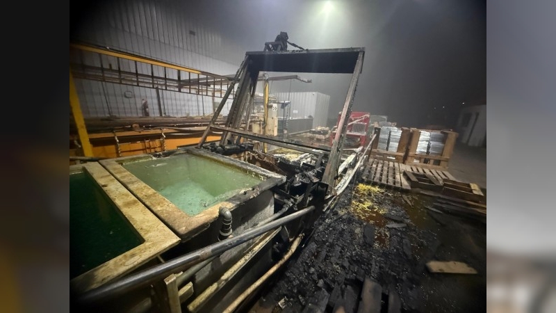 Al arribo de las cuatro dotaciones que intervinieron, se constató que el fuego afectaba una batea dedicada al proceso de cromado de aceros y tratamiento de metales.