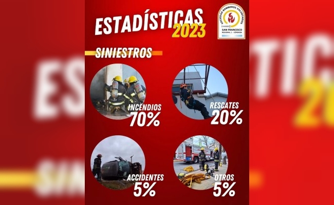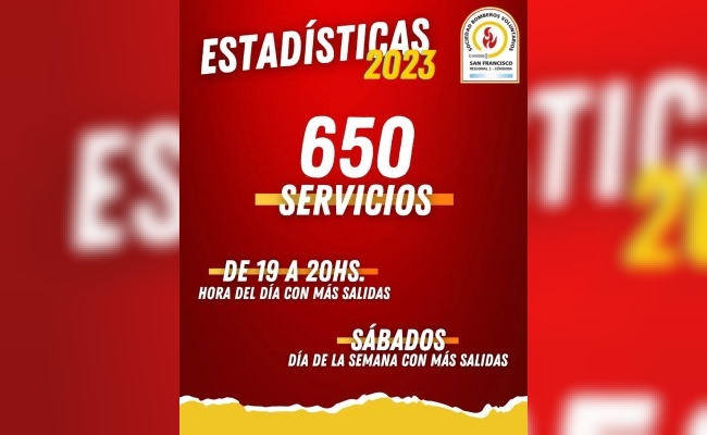 En 2023, los Bomberos Voluntarios de San Francisco asistieron a un total de 650 servicios, tanto programados como emergencias.