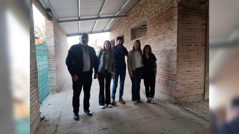 El intendente Oscar Martínez, acompañado por la Delegada de la Región VIII de Educación, Danisa Astegiano, junto a coordinadores de equipos socioeducativos, realizó una recorrida por el avance de obra de las nuevas aulas del jardín nucleado, donde fueron recibidos por la directora de la institución, Milva Malano.