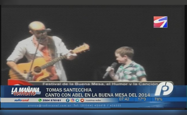 En el marco de una de las últimas ediciones del Festival del Humor, la Buena Mesa y la Canción, Tomás Santecchia tuvo la posibilidad de cantar con Abel Pintos en la Sociedad Rural de San Francisco.