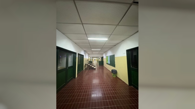 Las tareas incluyeron además la colocación de nuevas luminarias exteriores para reforzar la seguridad y visibilidad en los sectores de circulación. En el interior del edificio se ejecutaron trabajos de pintura integral de las instalaciones, mejorando las condiciones generales del espacio educativo.