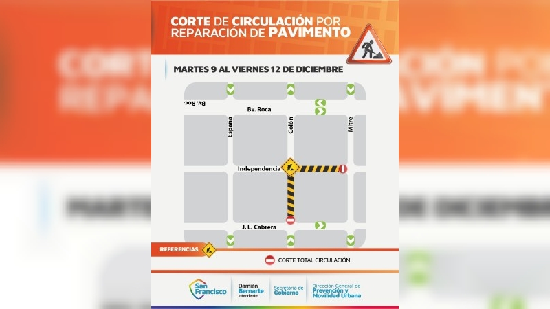 Comunicado de la Municipalidad: desvíos hasta el viernes por bacheo de gran parte en Colón e Independencia