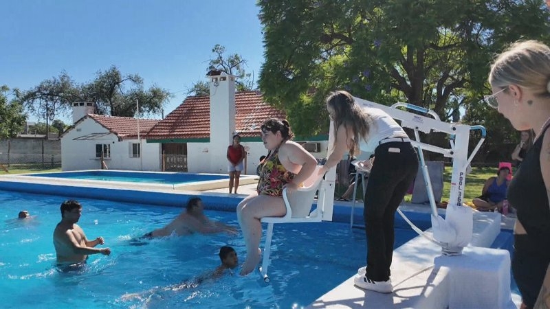 Sportivo Belgrano incorporo un ascensor en la pileta para personas con movilidad reducida