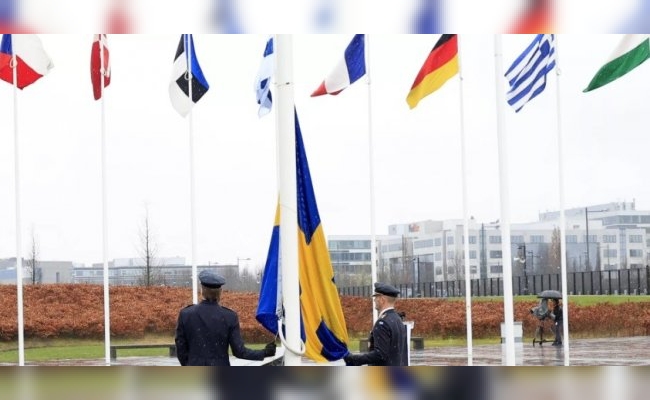 La bandera de Suecia ya ondea en la sede de la OTAN en Bruselas