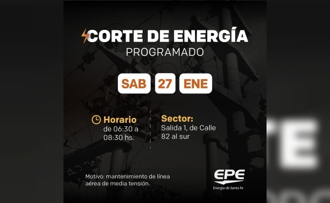 Corte de energía programado para mañana sábado 27 de enero